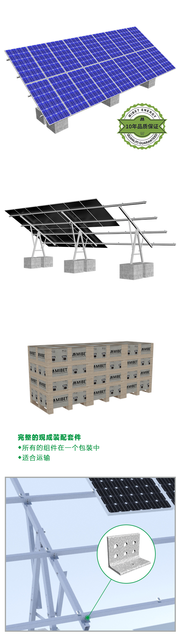 MRac手动可调节地面支架 适用于大型商业及公共事业电站的安装,该产品结构牢固、稳固性强,主要配件采用碳钢制成,具有良好的抗腐蚀能力。该产品设计灵活,可手动调节电池板角度,让发电效率更高,收益更大。结构上的优化设计,有效的提高了安装时效,大大降低 了工程安装成本。